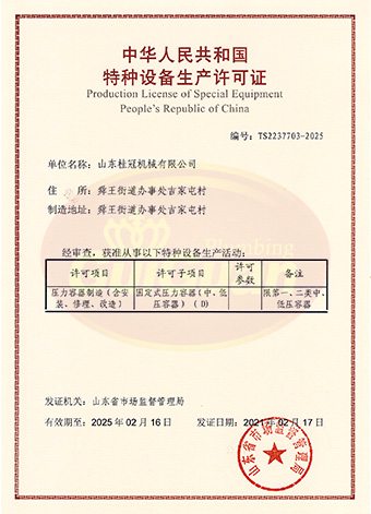 山東桂冠機(jī)械有限公司成立于2008年,注冊資金1600萬元,現(xiàn)有員工200多人,中高級(jí)技術(shù)管理人員45人,占地面積27000多平方米,生產(chǎn)車間面積12000多平方米。公司具備壓力容器產(chǎn)品的設(shè)計(jì)、制造(證書編號(hào)為:TS2237703-2025)、壓力管道安裝(證書編號(hào)為TS3837607-2025)全套壓力容器資質(zhì);通過國家ISO9001質(zhì)量管理體系認(rèn)證、美國ASME認(rèn)證、歐盟CE認(rèn)證;擁有建筑安裝機(jī)電工程專業(yè)承包叁級(jí)資質(zhì)、建筑工程施工總承包叁級(jí)資質(zhì)及對外貿(mào)易經(jīng)營出口權(quán)…